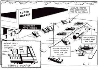 The photos and the graphic are all we have on an experiment Kerr-McGee once tried with providing gasoline for people while they shopped at the neighborhood grocery.