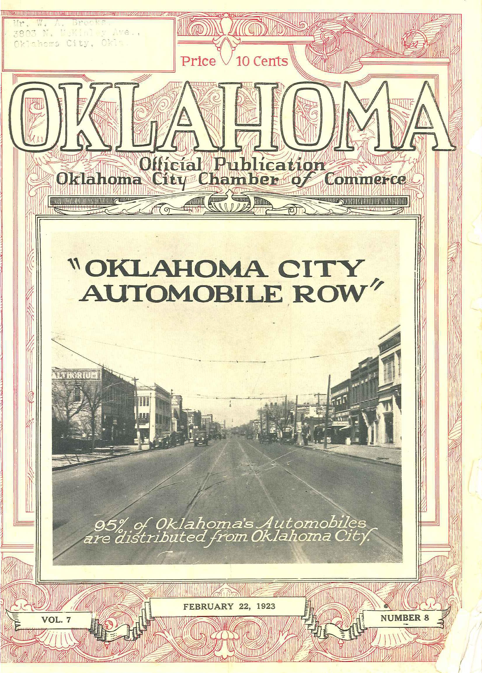We’ve written about Automobile Alley before, including a “then and now” sequence of photos showing the area right after the 1995 bombing of the nearby Alfred P. Murrah Federal Building and now that it’s been redeveloped as a thriving mix of urban housing, offices, restaurants and shops. Some cars, most notably Mercedes and Jaguars, are still sold on Broadway. But once upon a time, it was the only place to shop for cars. Thanks to Bob Bekoff, owner and operator of the Bricktown Water Taxis, Oklahoma’s Red Dirt Emporium and the Red Dirt Marketplace, for acquiring this magazine and adding to our collections.