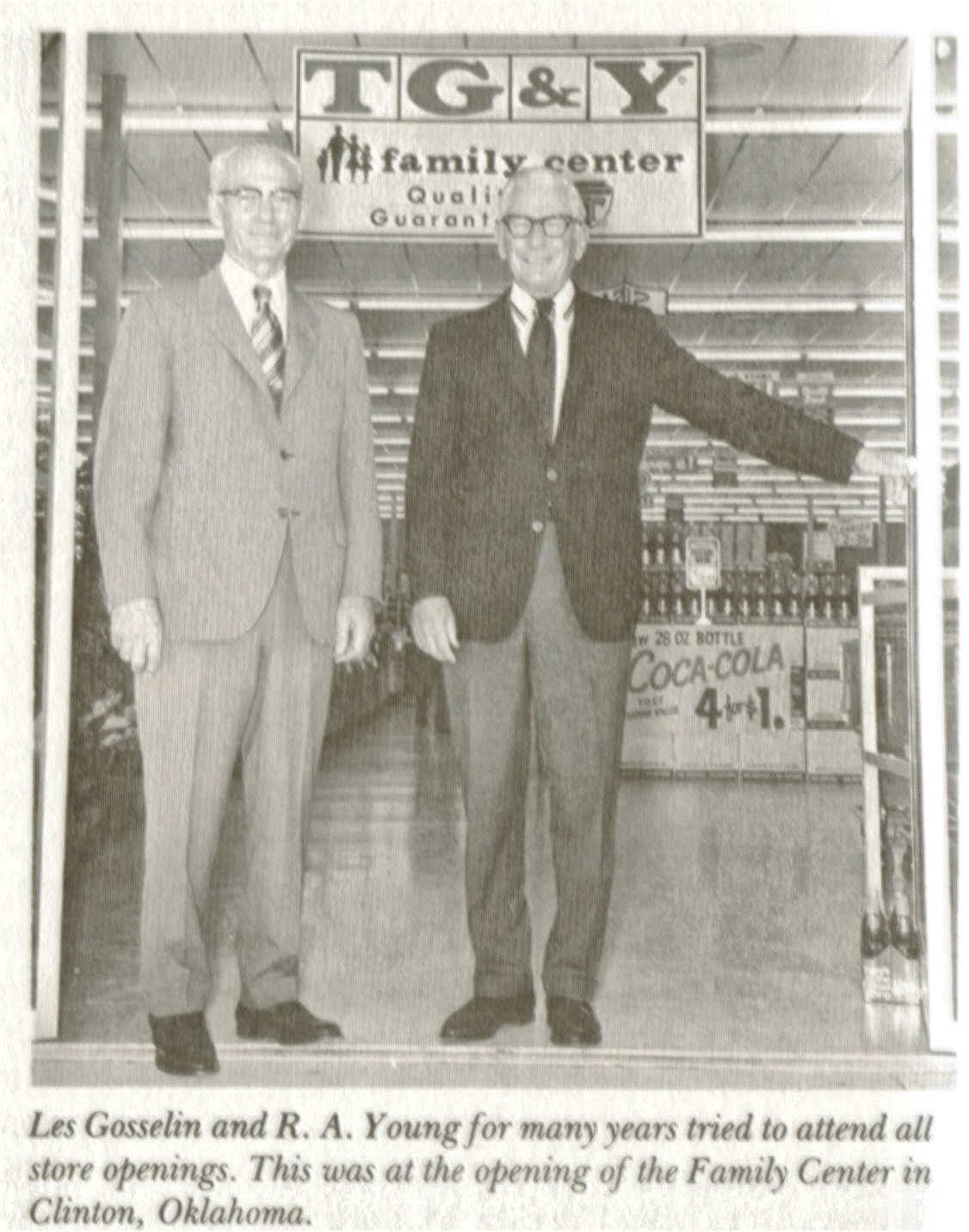 From there he rose up through the ranks of Kessege stores (the early-day version of Kmart) and then started his own small chain of five-and-dime stores. TG&Y was started when Young merged his stores in 1935 with those of Rawdon E. Tomlinson and Enoch L. “Les” Gosselin.